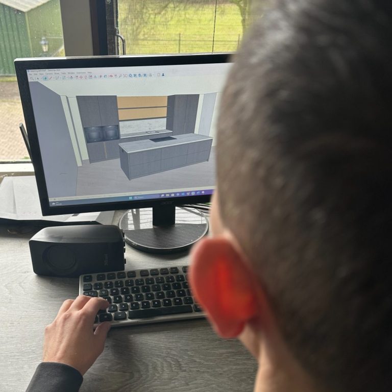 Ik begin altijd met luisteren. Wat vind jij belangrijk in je keuken of kast? Samen bedenken we een ontwerp dat past bij jouw ruimte, stijl en dagelijks gebruik — mooi, praktisch en persoonlijk. De tekeningen worden volledig in 3D gemaakt, zodat je het ontwerp van alle kanten kunt bekijken en een goed beeld krijgt van het eindresultaat.