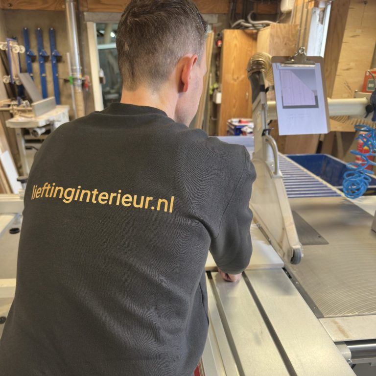In mijn werkplaats maak ik elke keuken en kast helemaal zelf. Geen lopende band, maar echt vakwerk — op maat, met de hand en met aandacht. Elk detail krijgt de tijd die het verdient.